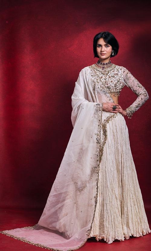 Ivory Crushed Lehenga Set