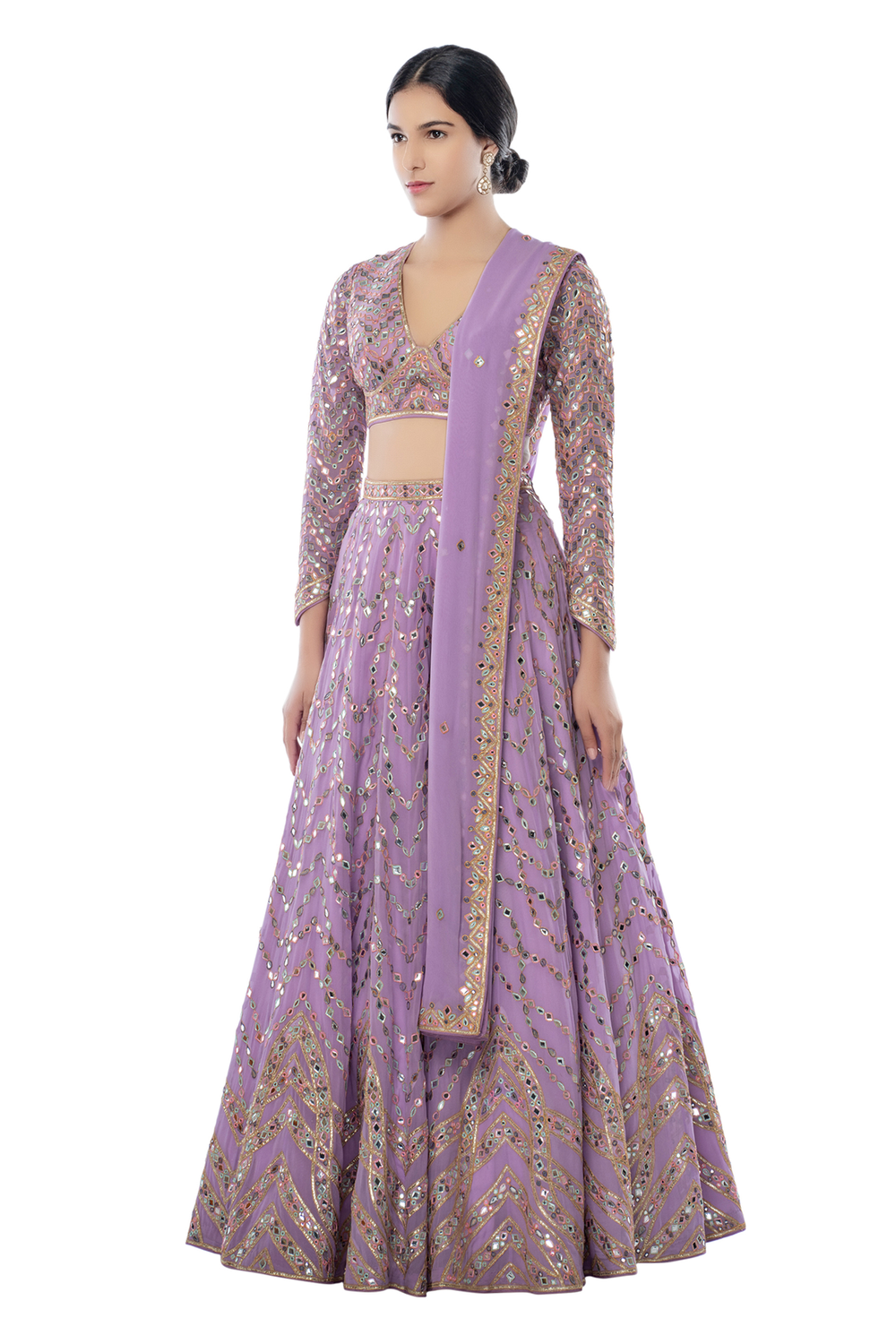 Lavender Lehenga Set With Foil And Multi Resham Embroidery
