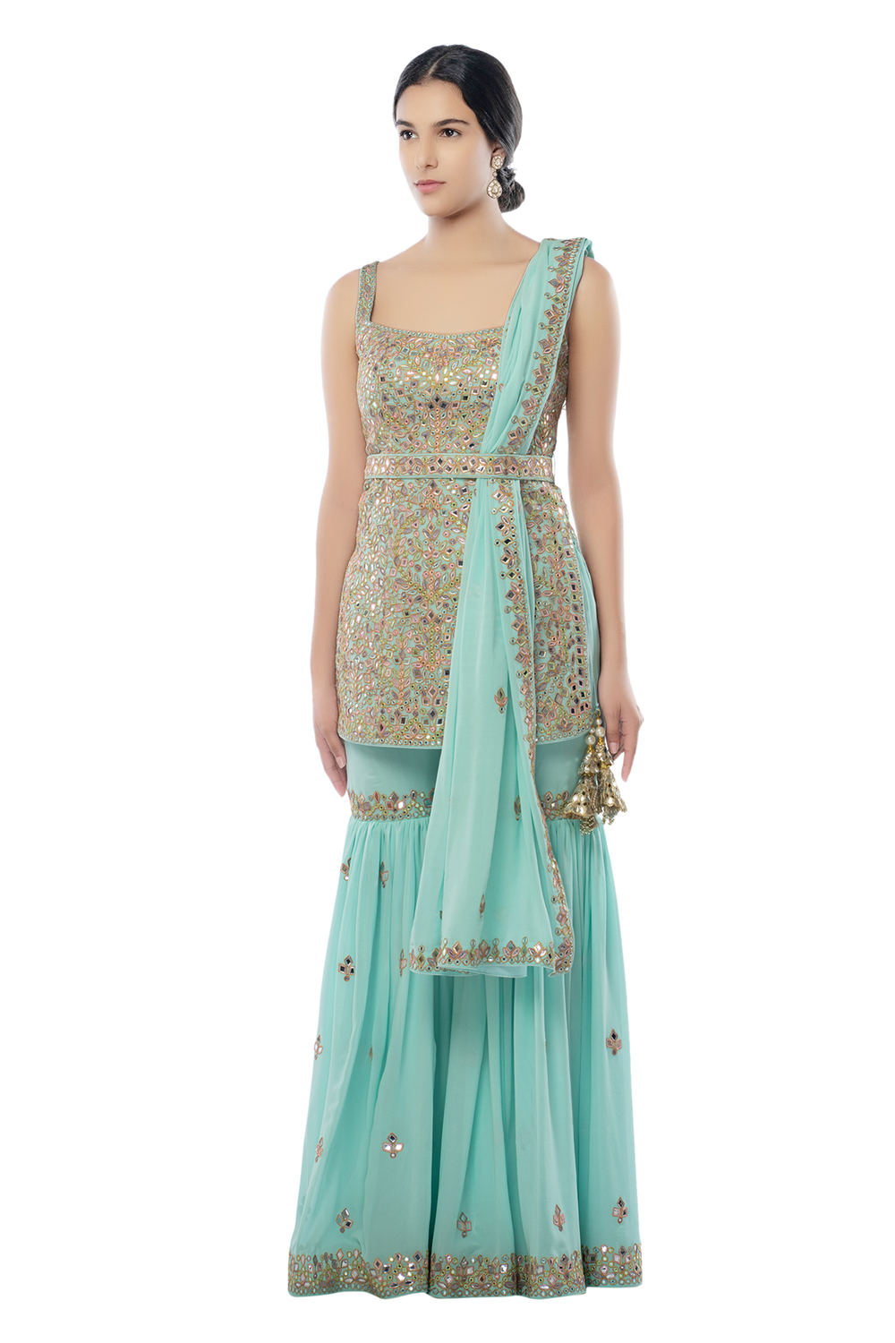 Light Blue Gharara Set With Belt