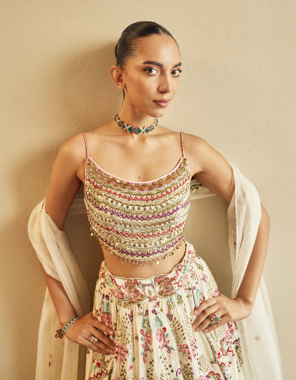 IVORY LEHENGA SET WITH MULTI COLOURED EMBROIDERY