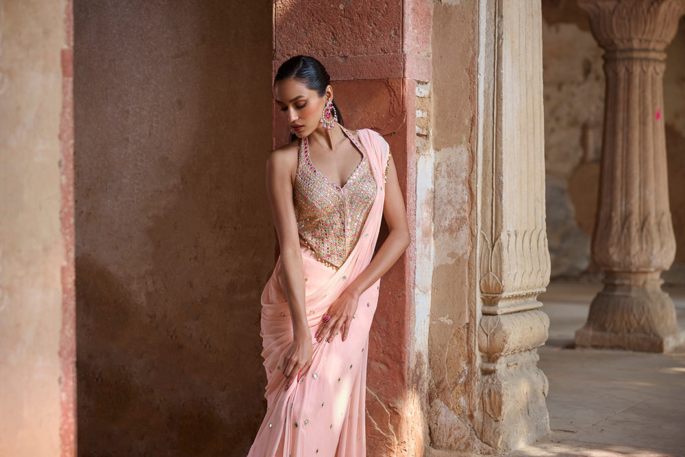 Peach Corset Pre Draped Saree