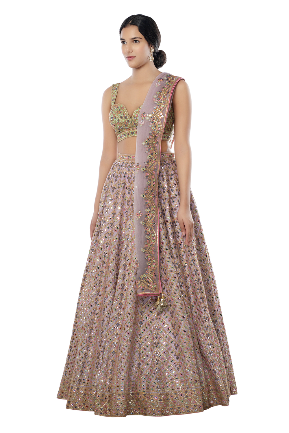 Lavender Chanderi Lehenga Set With Foil, Resham, Gota Embroidered Heavy Lehenga Set