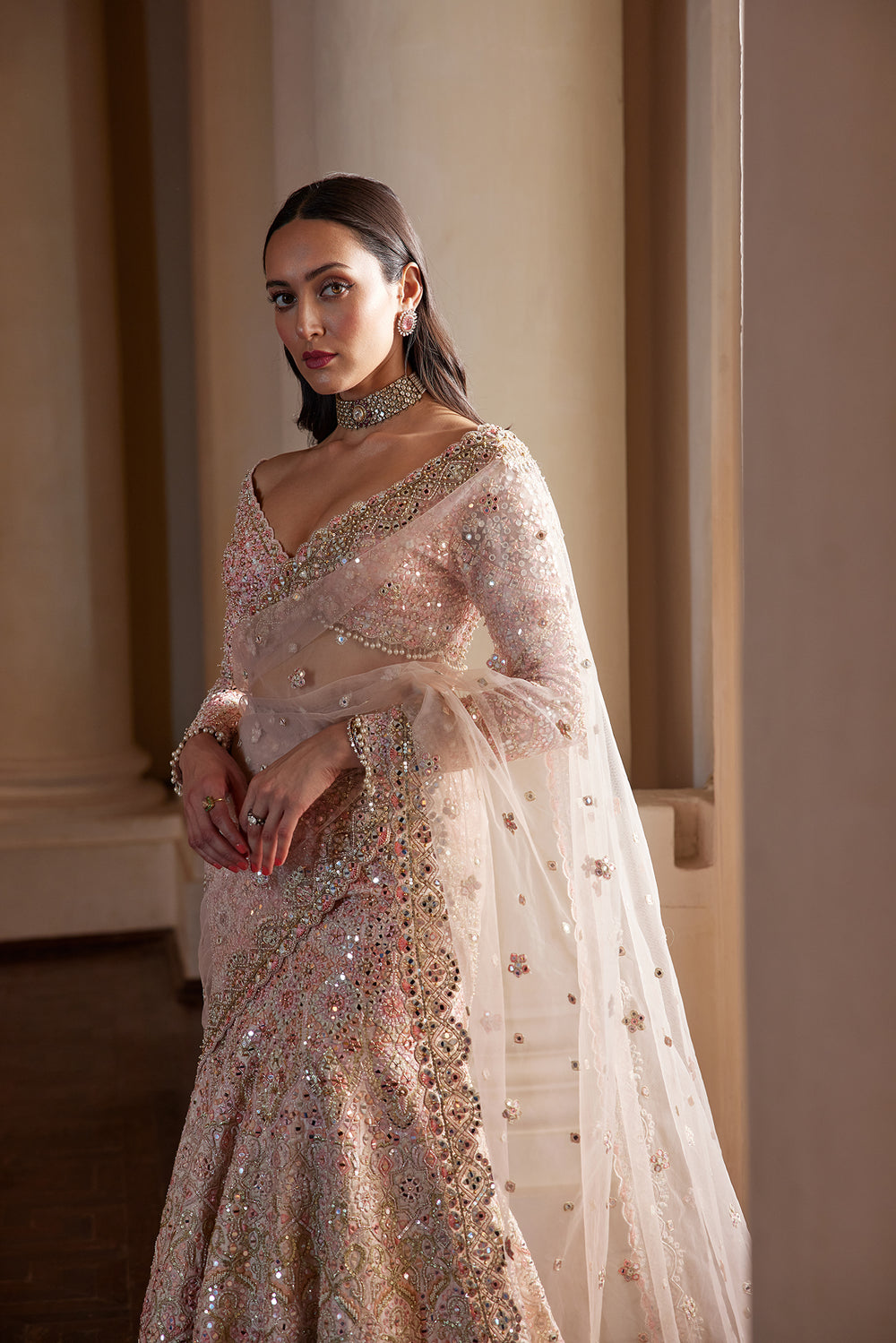 Step into your wedding day radiance with Tamanna Punjabi Kapoor’s Pink Fit and Flare Lehenga Set from the Serenade Bridal collection. Crafted in luxurious raw silk with a dreamy tulle dupatta, this bridal lehenga captures timeless elegance. The intricate zardosi, sequin, mirror, and resham embroidery shimmer beautifully with every step, making it perfect for the modern bride who loves tradition with a touch of glamour. A statement choice for your wedding celebrations and grand bridal occasions.