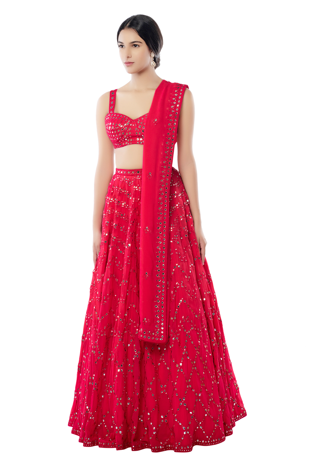Pink Georgette Lehenga Set With Foil Resham Embroidery